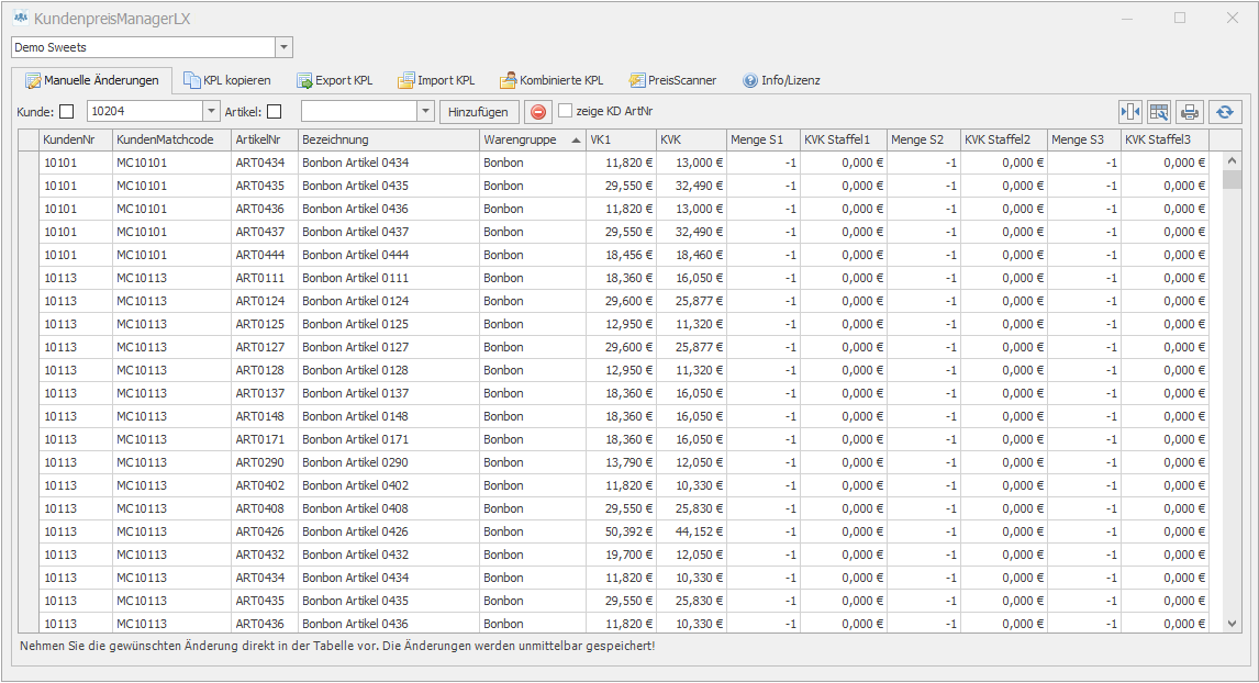 Mit dem KundenpreisManagerLX Pro sind somit über den Umweg der Kundengruppen beliebig viele Preisgruppen möglich.