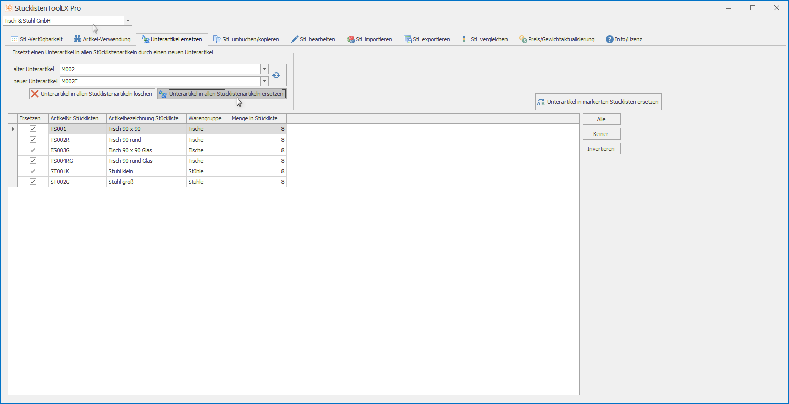 - Stücklistenübergreifende Ersetzung von Unterartikeln