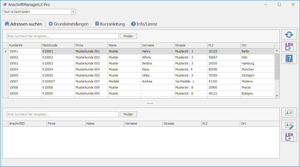 Sie können AnschriftManagerLX Pro völlig unverbindlich und kostenfrei für 30 Tage testen. Die Demo-Version ist im Funktionsumfang nicht eingeschränkt. Nach Ablauf der 30 Tage, werden die Anschriften für neue Aufträge nicht mehr übernommen. Bestehende Aufträge werden nicht geändert.